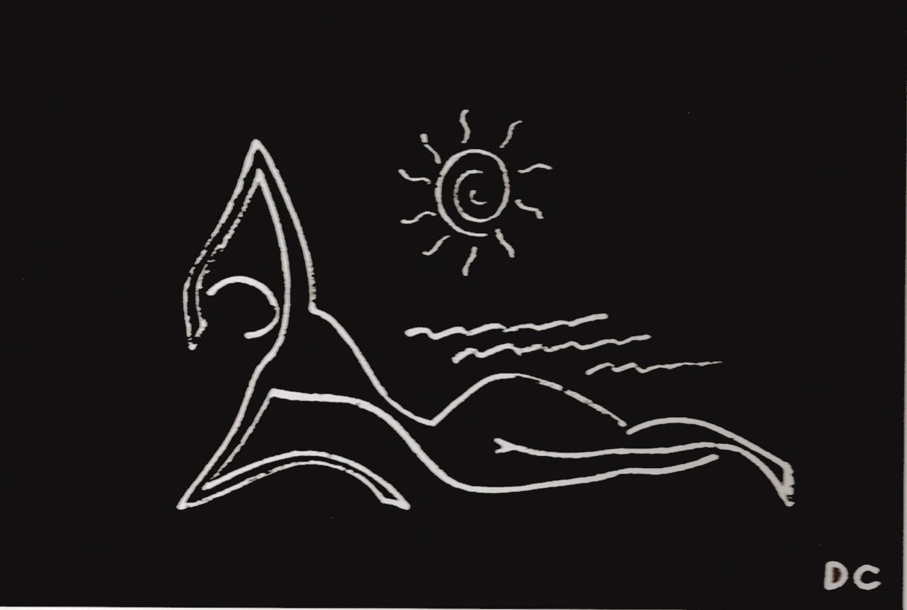 A minimalist vision of a woman on the beach basking in the sun. By Darren Cromartie